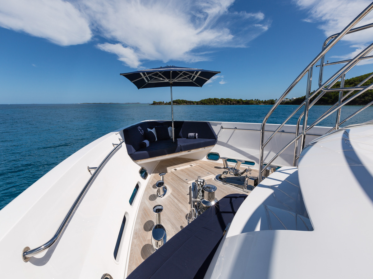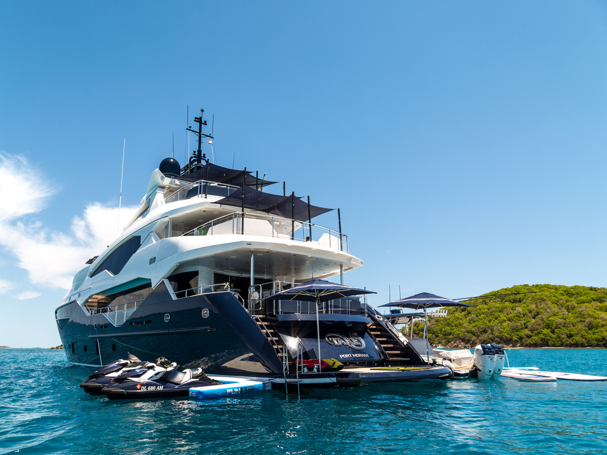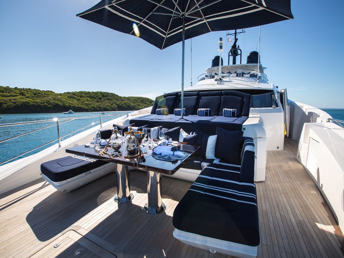 Built in 2016 by Sunseeker, the 131-foot (39.93m) charter yacht TAKE 5 is seductive, elegant and luxury at its finest. TAKE 5 features three spacious decks for guests to enjoy. Outside her aft deck, skylounge deck and sundeck offer guest a variety of dining options, lounge areas and sunpads to soak up the sun. Her main salon and skylounge are elegant luxury at its finest with glamorous décor, ample lounge areas and massive windows that offer charter guests stunning views of their charter destination. Charter yacht TAKE 5 accommodates up to 12 guests in five stylishly seductive staterooms. Her 900-square-foot master stateroom is forward on the main deck and provides a luxurious private oasis featuring a walk-around king bed and en-suite with a large European rainfall shower and dual sinks. TAKE 5 is a wonderful charter yacht for families as below deck she has two queen staterooms and the two twin-bed staterooms each with a Pullman. Guest staterooms are exquisitely decorated and positioned at water level offering charter guests tranquil views. Each stateroom is accompanied with a private en-suite bathroom that offers Bulgari “au the bleu” bath products for all guests. TAKE 5 offers numerous toys for guests to enjoy on board and on the water. Her multi-functional beach club houses the water toys and can be converted into a recreational area when all the water toys are out at sea. TAKE 5 has been meticulously maintained to the highest of standards since being built in 2016 and will continue to be kept in pristine condition for years to come with the current owner and crew of nine.