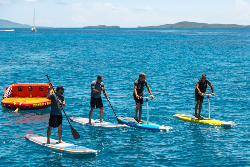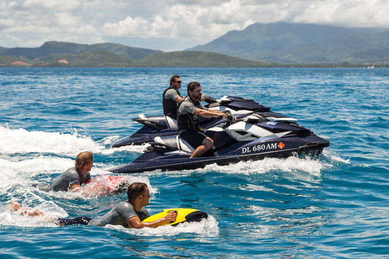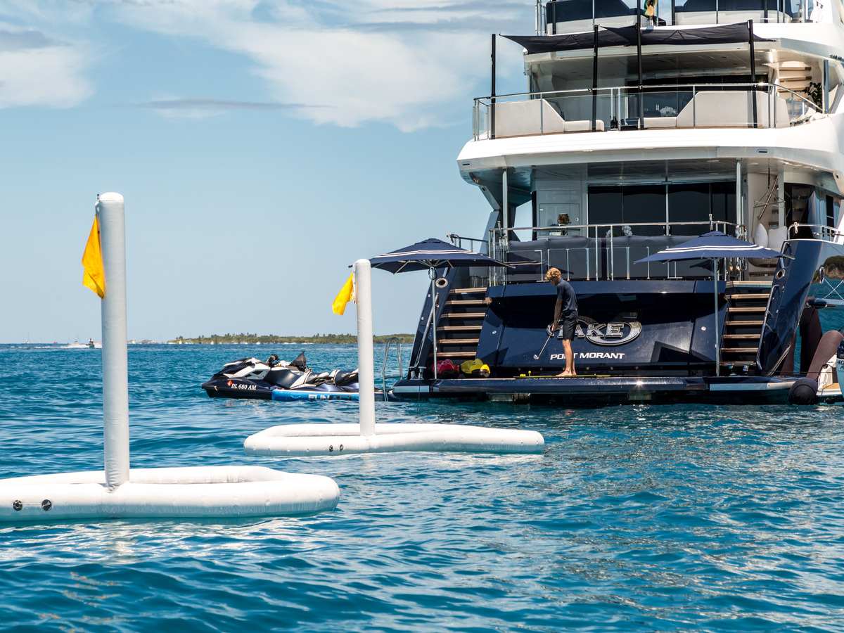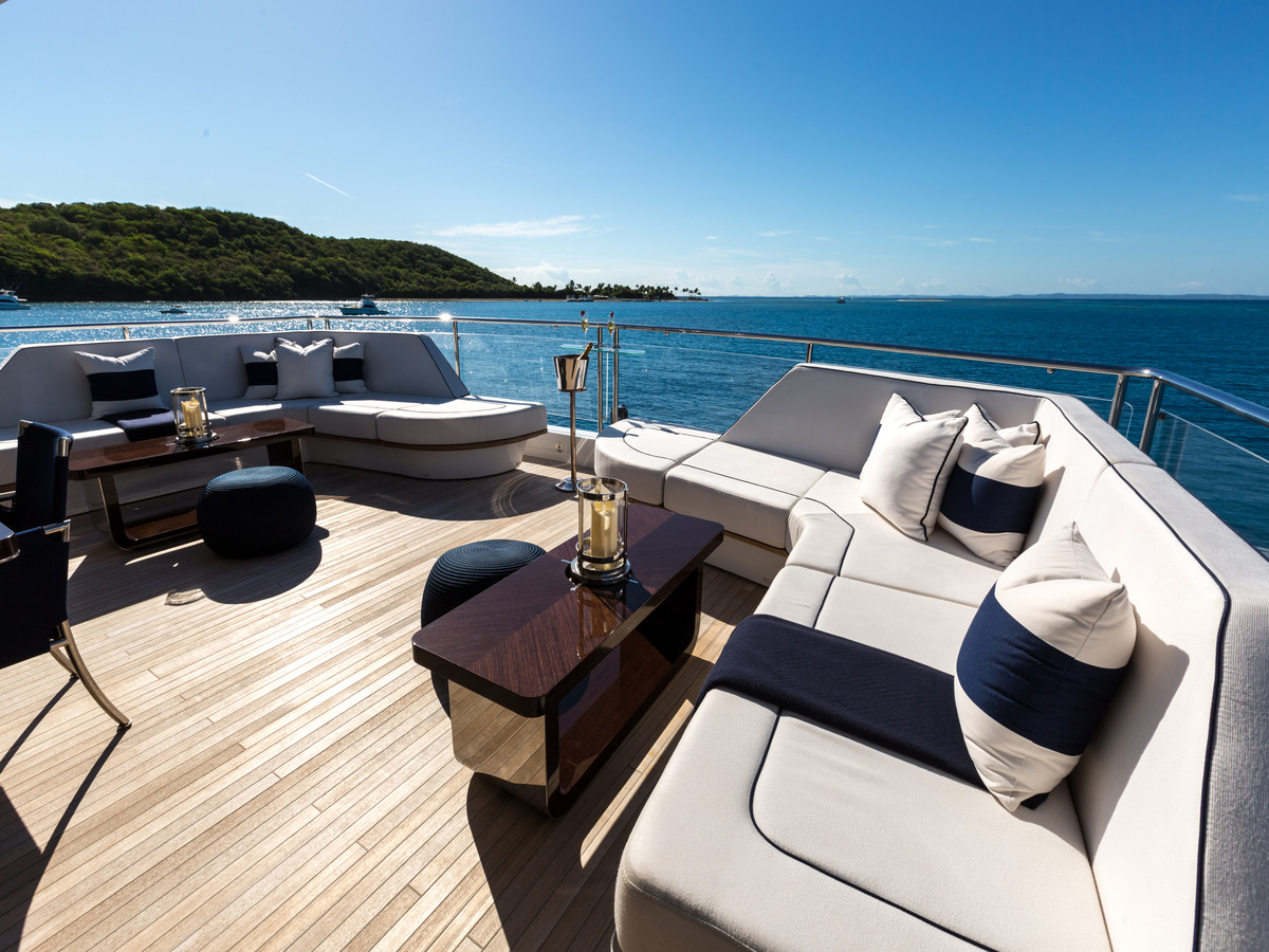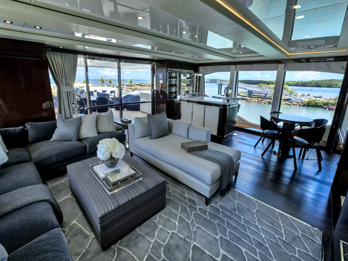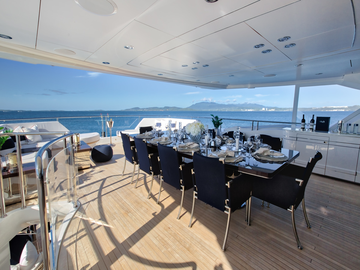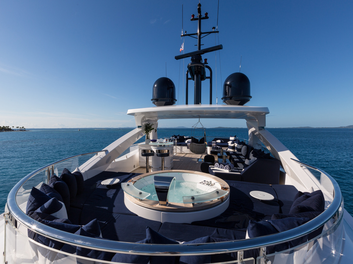 Tenders & Toys: 34’ Nortec towed tender 2 x 400hp engines 18’ Williams Tender 180hp Waterslide 2 two-person Sea-Doo Jet Skis: 1 x 2 seater RXP model, 1 x 3 seater GTIR model *Floating Sea-Doo Jet Ski dock so Sea-Doos are readily available for guests 2 Seabobs 4 x Stand-up inflatable paddle boards & 2 elliptical paddle boards 1 x Inflatable 2 person kayak Wakeboards & Kneeboards Towable toys Fun Floating Oasis Floating Splash Pad “Yacht Golf” PVC with special netting Snorkeling gear (adults & children) Assorted fishing equipment Basketball hoop on Sundeck Bocce Ball Rendezvous diving only Drone Exercise Equipment: Treadmill Yoga mats Free weights Massage table Audio Visual Equipment and Deck Facilities: MAIN SALON Elegant, luxury at its finest, glamorous decor. Ample lounge areas. 80" flat screen retractable TV with surround sound. Dayhead forward on Stbd side. Easy "1 touch button" for access to Aft Deck. Six floor to ceiling windows offering fantastic views. MAIN AFT DECK Aft settee lounge seating with table for cocktails. Access to Beach Club & Skylounge Deck. Below the Aft Deck is TAKE 5's Beach Club which houses all the water toys. This is a multipurpose activity center that can be converted into a recreational area when all the water toys are out at sea. The massive swim platform serves as an extra deck near the water level, and a place for the crew to setup a private beach club. SKYLOUNGE Ample lounge spaces with 3 large couches. Full bar. 103" flat screen TV. Dayhead on Port side, Stew pantry with dumbwaiter. Massive windows offering sweeping views. "Zen-like" custom wall fountain. Game table for 4. Easy "1 touch button" for access to Skylounge Deck & Main Aft Deck. SKYLOUNGE DECK Alfresco dining for 12 on a stunning teak table. Chic lounge area Aft. Optional awning is available for extra shade. SUN DECK DREW’s massive Sun Deck is divided into 2 sections: AFT: 2 GIANT sunpads with optional sun triangle shading. FORWARD: Large bar with bar stool seating for 2. Port settee casual dining & cocktails for 10. 42” flat screen TV. Jacuzzi perfectly positioned all the way forward for sensational views. PORTUGUESE DECK Massive U-shaped settee dining for 8. Large sun pad behind. Communications: VSAT WiFi Satellite phone Satellite TV Cell phone