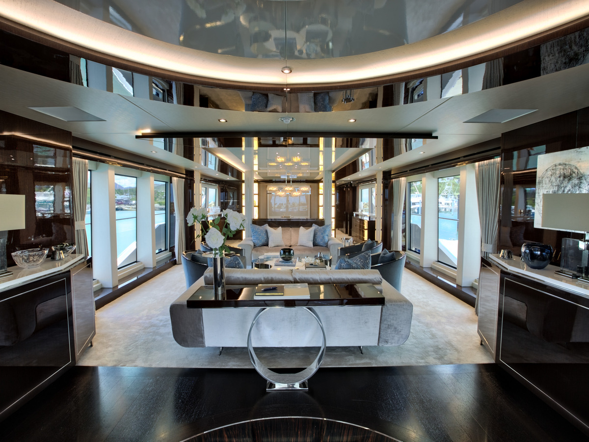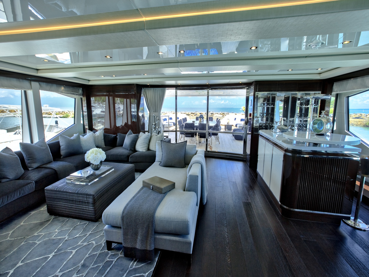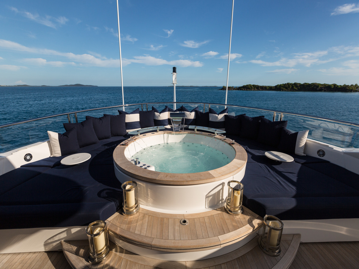 A total of 5 staterooms accommodating up to 12 guests, complimented by a professional crew of 9. All accommodations are equipped with TV & iPads, individual climate control, ORCA entertainment system, individual satellite receivers, complete blackout, iPod docking stations, reading lights, robes, slippers, hair-dryers, telephone, and Wi-Fi access. MASTER STATEROOM SUITE The Master Stateroom is situated forward on the Main Deck measuring approximately 900 sq. ft. The walk-around King bed faces forward and features an 80” flat screen TV, surround sound, cozy lounge chair to Port, desk on Stbd side. Forward access to en-suite bath. Large European rainfall shower in the middle, 2 sinks & toilet on Stbd side. The entire Master suite features large windows offering plenty of natural light with stunning views of the Sea & Sky. Safe. BELOW DECK: Access to the 4 below guest staterooms are lead by a stainless steel spiral stairwell. TAKE 5’s exquisitely decorated staterooms are positioned at water level offering tranquil views. Ample locker/storage space in all staterooms. TAKE 5 proudly offers Bulgari "au the bleu" bath products for each guest. GUEST STATEROOM #1 ~ Port Aft Features a walk around Queen size bed, 42” retractable TV. En-suite bath features a large rainfall shower. 2 sinks, toilet. Safe. GUEST STATEROOM #2 ~ Stbd Aft Features a walk around Queen size bed, 42” retractable TV. En-suite bath features a large rainfall shower. 2 sinks, toilet. Safe. GUEST STATEROOM #3 ~ Stbd Forward Features Twin beds, 42” flat screen TV. En-suite bath features a large rainfall shower, single sink, toilet. Pullman. Safe. GUEST STATEROOM #4 ~ Forward Port Features Twin beds, 42” flat screen TV. En-suite bath features a large rainfall shower, single sink, toilet. Pullman. Safe.