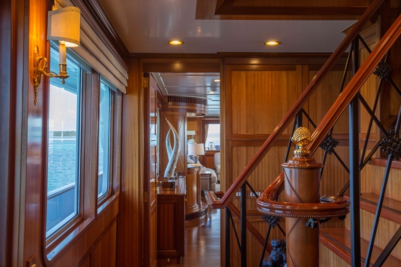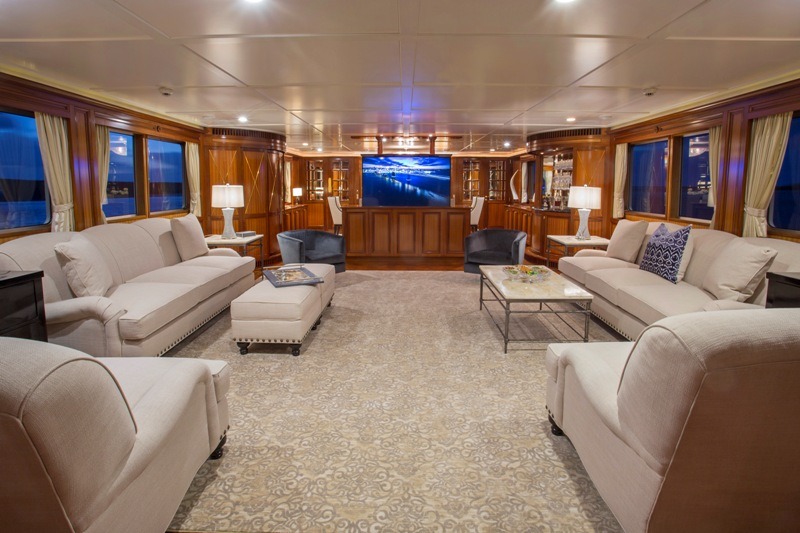 LADY VICTORIA offers a complete escape from the average and ordinary. A true gentleman’s yacht, she is a haven of impeccable elegance. Her gracefully classic exterior lines are complemented by a refined interior that suggests the atmosphere of an exclusive club. Beautiful French doors open from the aft deck into the expansive salon, where soft, cream-colored furnishings lend a light, contemporary touch to masterfully crafted, curved wood paneling accented with gold. The salon opens to the dining area and a large oval table whose supremely comfortable chairs invite lingering over candlelit dinners. Farther forward, a door leads into the owner's private, country-style galley. This secondary area provides a unique and convenient addition, with the capacity for everything from complete formal, gourmet delights to simple snacks and drinks. Also on the main deck, a richly furnished library creates a welcoming spot for quiet pursuits. Recent upgrades include a modern entertainment center with over 400 movies, satellite TV, and a variety of games. This handsome space can be converted to a sleeping cabin with a queen bed, giving the yacht the capability to accommodate up to eight guests. Three large staterooms are located on the lower deck, just down a spiral staircase. The full-beam master is fitted with a king bed, seating area, and desk. Its his-and-hers bathrooms with spa tub and shower are finished in spectacular golden onyx. A second spa tub is found in the onyx-lined bathroom that accompanies the lovely queen stateroom. In the third stateroom, with two twin beds, the ensuite bathroom has a steam shower framed by a vaulted blue-glass ceiling. The covered aft deck is a popular spot for casual meals and cocktails. Its high-gloss varnished mahogany chairs, along with dark blue and red piping-accented cushions, suggest the feeling of a stylish yacht club and invite relaxed conversations. Up on the sundeck, guests may choose to stretch out in the lounge chairs or enjoy the scenic views from a table and chairs set beneath large umbrellas. A new entertainment center has been added here for listening and viewing pleasure. The Jacuzzi, with ample space for up to six, is an irresistible place to unwind in the gentle breeze or beneath the stars. The Jacuzzi can also be converted to a comfortable sunbed. LADY VICTORIA has the full complement of water toys, including two underwater scooters. For the ultimate in classic style, she also carries a sleek, 18-foot Riva Junior motorboat, which has been completely restored to concours d’elegance standards. Complementing the Riva is a 16-foot hard-bottom inflatable that's perfect for watersport activities and exploratory excursions. Led by her gracious and exceptionally experienced captain, LADY VICTORIA’s crew look forward to creating a memorable, five-star experience custom-designed for her guests.
