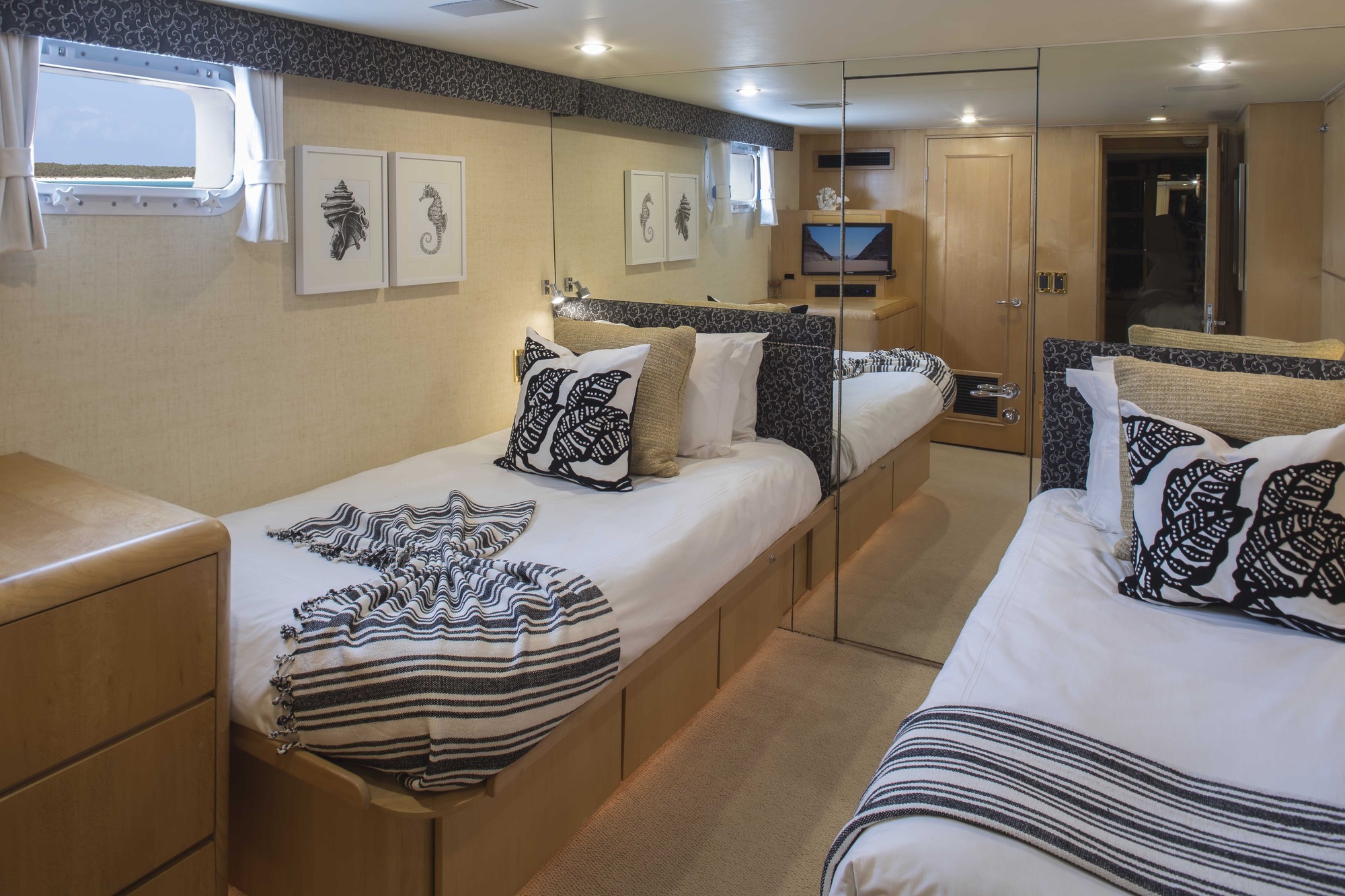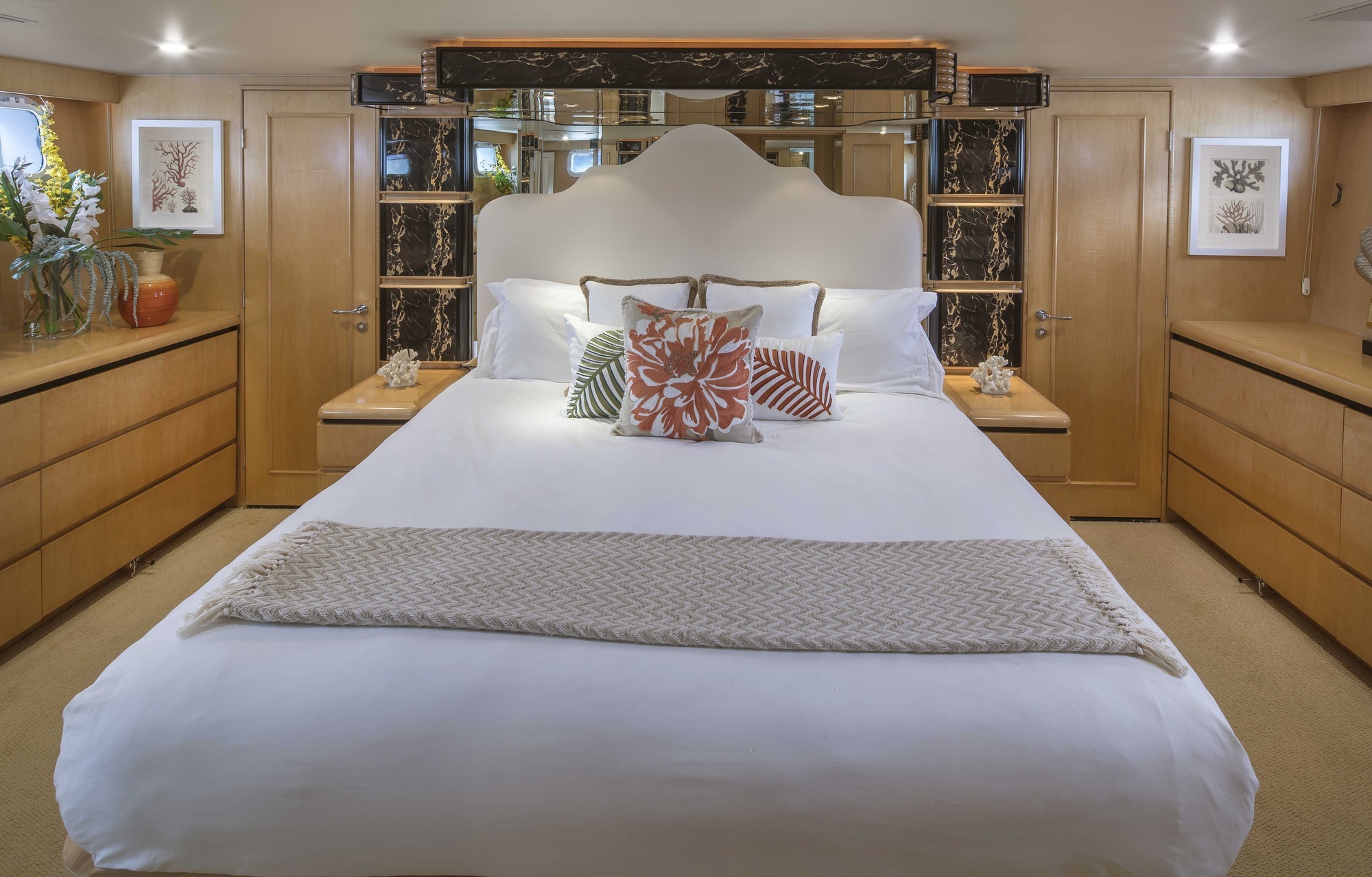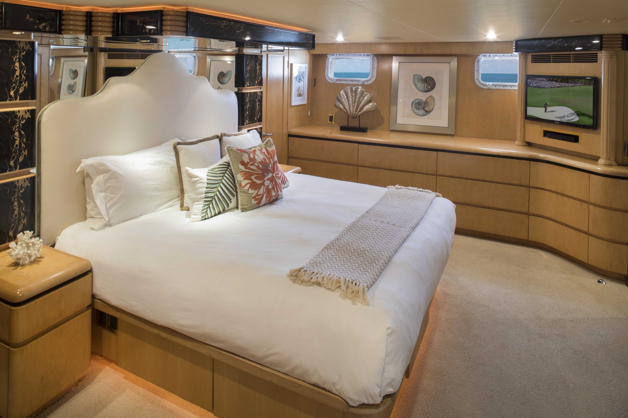 Guest Accommodation: Master Stateroom- has a king berth and separate his and her heads. His head has a stall shower while her head has a Jacuzzi tub. There is a large walk-in wardrobe. VIP Stateroom- Queen Bed, ensuite head with shower. Port and Starboard Guest Staterooms- each have twin beds, and ensuite head with shower. Aft Guest Stateroom- feature a twin bed, wardrobes, and ensuite heads with showers. Broker friendly video of KELLY ANNE: https://vimeo.com/210603955