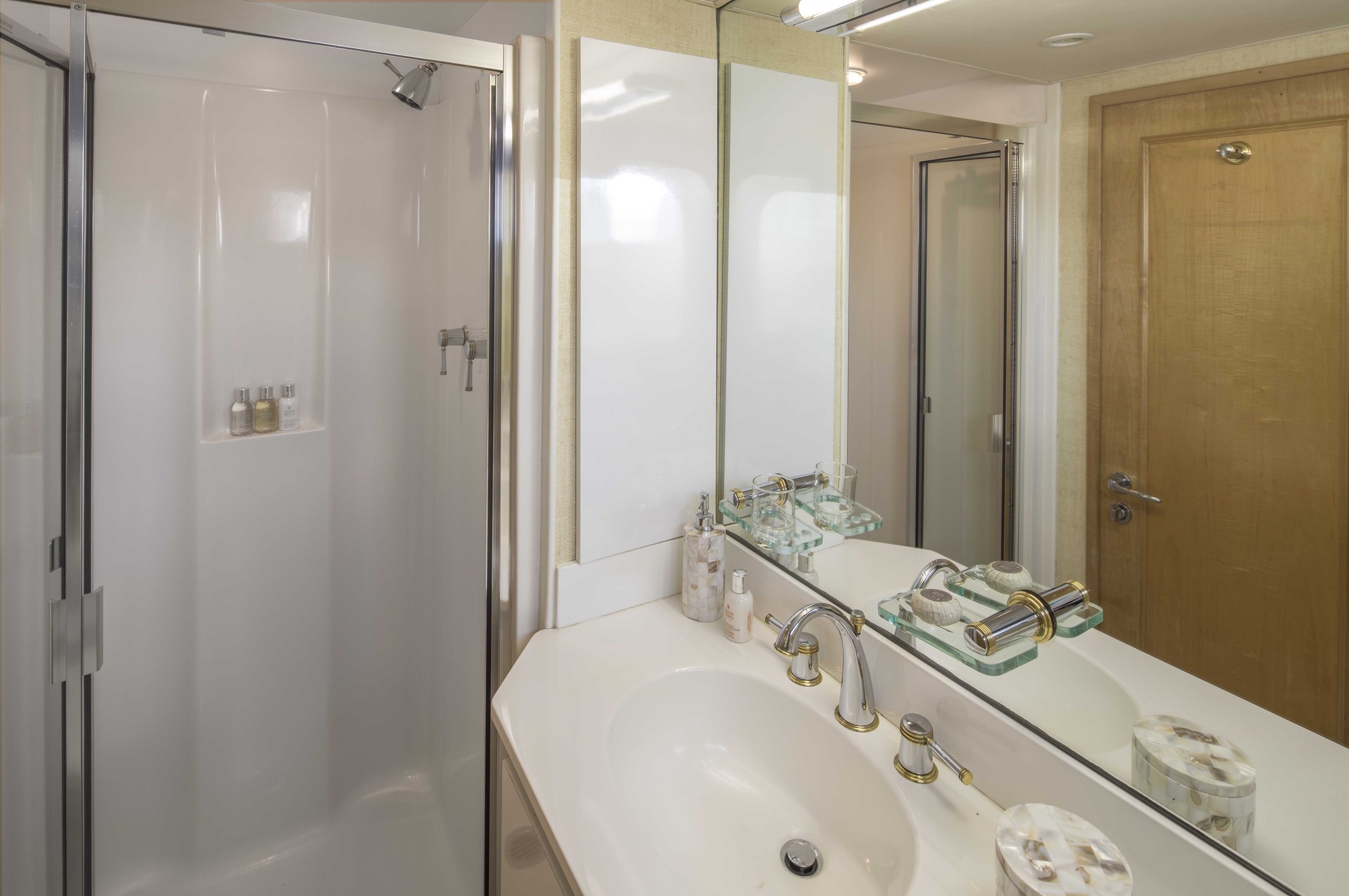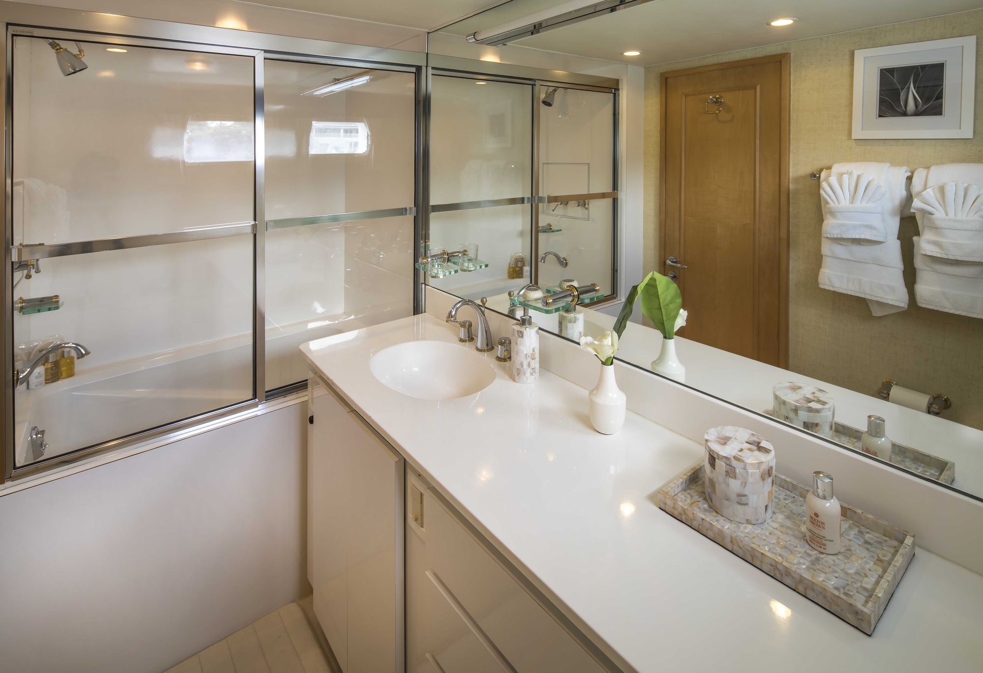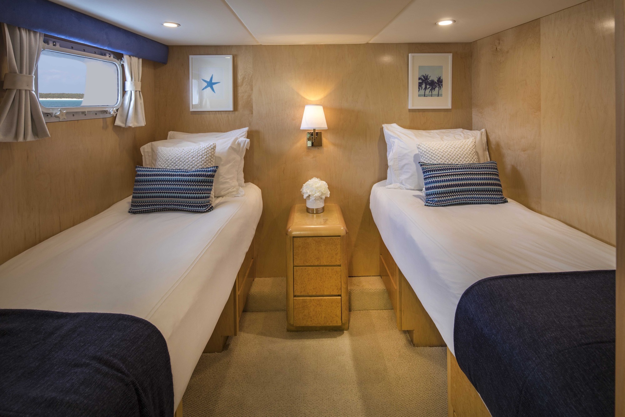 Guest Accommodation: Master Stateroom- has a king berth and separate his and her heads. His head has a stall shower while her head has a Jacuzzi tub. There is a large walk-in wardrobe. VIP Stateroom- Queen Bed, ensuite head with shower. Port and Starboard Guest Staterooms- each have twin beds, and ensuite head with shower. Aft Guest Stateroom- feature a twin bed, wardrobes, and ensuite heads with showers. Broker friendly video of KELLY ANNE: https://vimeo.com/210603955