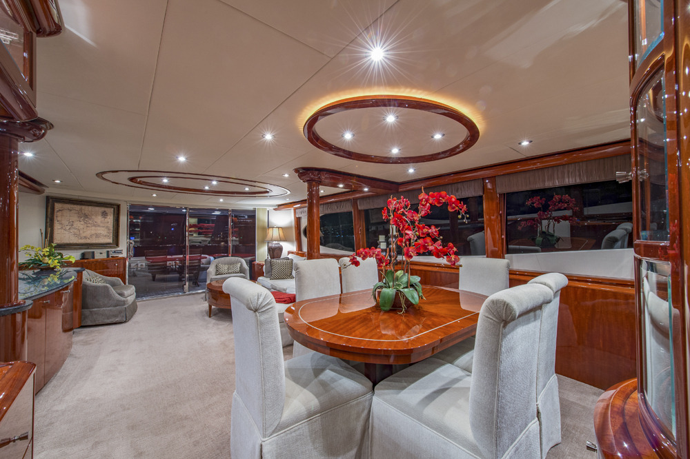 Tenders & Toys: • 30’ Renegade Center Console with head and shower w/ twin 250hp Yamaha Engines Well equipped with fishing equipment from Deep drop, Trolling to Reef fishing. • 14’ Nouvarania w/ 60hp 4 Stroke Yamaha engines • 2x Inflatable paddle boards • 2x 2 man Seadoo Sparks • Snorkel gear, 8-10 sets. Most new and in good condition • Hookah rig = 2 people at a time snorkeling • Noodles and floats Tow toys wake board, knee board, water skis and floating island. Please inquire. 2x Tommy Bahama Beach Umbrellas 6x Tommy Bahamas Chairs Portable Grill for beach BBQ The crew hire locals to help assist with beach picnic set up and cleaning fresh catch Audio Visual Equipment and Deck Facilities: • Satellite TV • Music 100 channels of music + Sirius XM in main salon and pilot house with outside speakers • 43’ Flat screen in the main salon • 43" Flat screen TV in the master • 15" flat screen with satellite TV in both VIP queen cabins and galley • 31" Smart TV in Sky Lounge Communications: WiFi at the dock