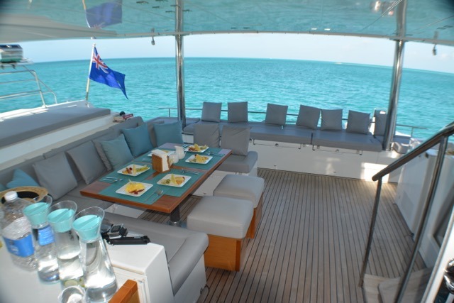 Tenders & Toys: Tender 14ft with 50 HP motor Hobie Sailing Trimaran 4 Kayaks Water Ski Wakeboard Standup paddle board Donuts towable Snorkel Gear Fishing Gear Audio Visual Equipment and Deck Facilities: Radio/CD/MP3 player + loudspeakers in saloon, cockpit & flybridge, remote controlled Colour LCD TV 32” PAL/SECAM with DVD in saloon with electrical up & down control Communications: Satellite phone & Internet system