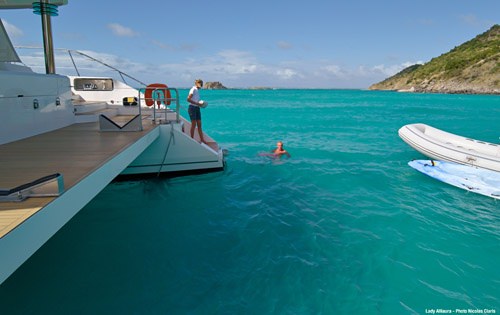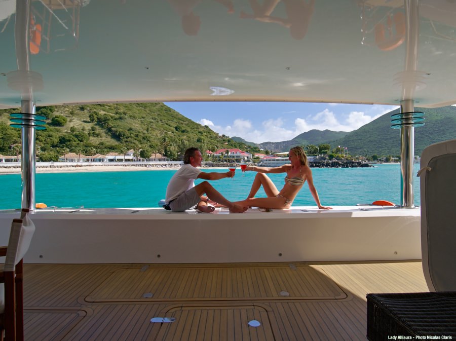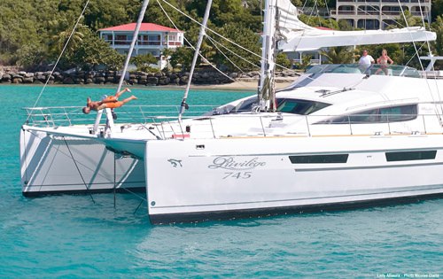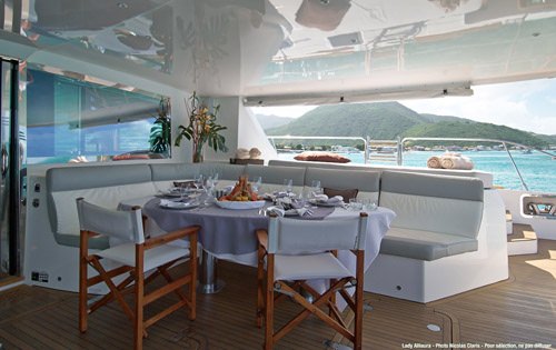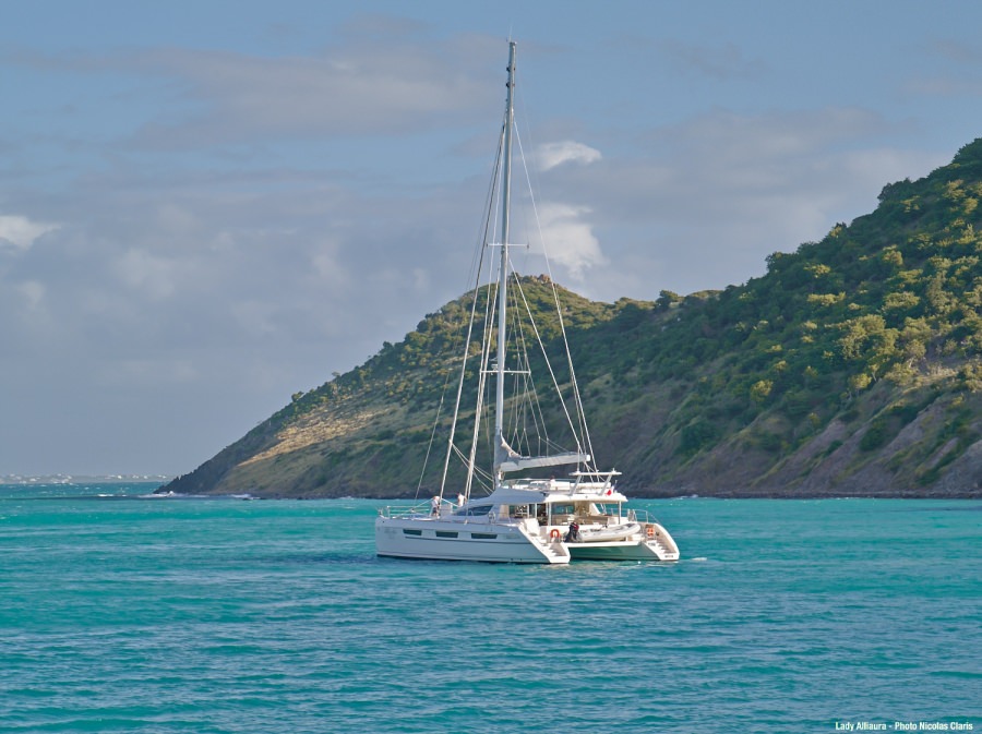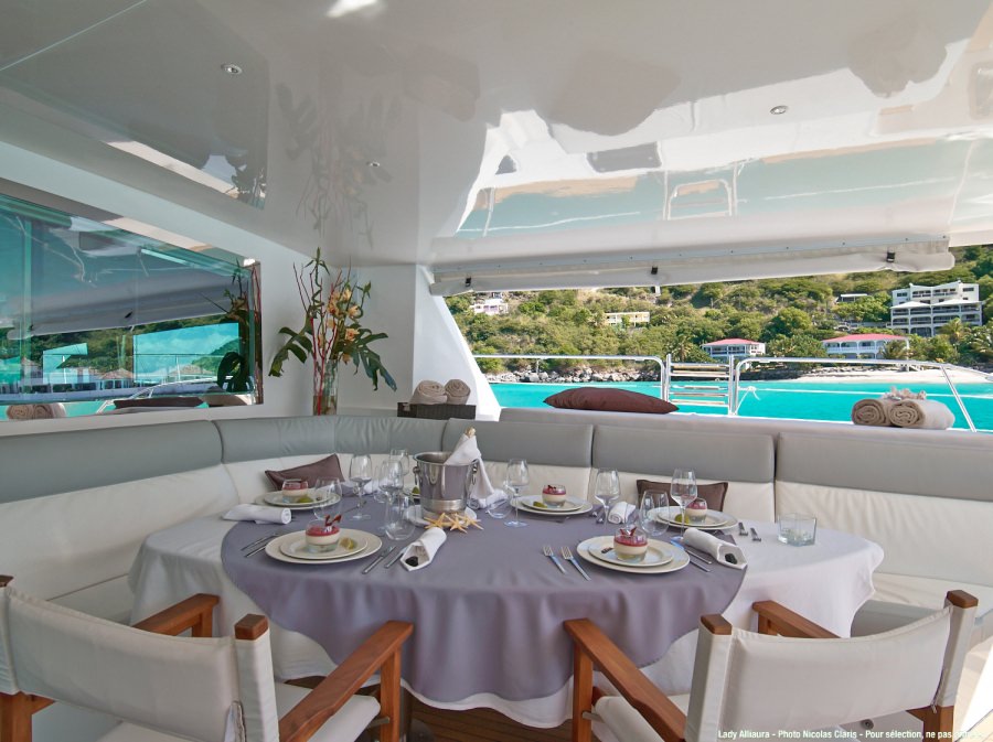 LADY ALLIAURA yacht is a 75.0 ft long sailboat catamaran and spends the summer winter season in Antigua and surrounding islands. It was built by PRIVILEGE ALLIAURA MARINE GROUP in 2010. The yacht layout features 4 cabins and accommodates 8 guests. The cabin arrangement is following: 1 king cabin, 3 queen cabins. The sailboat features Engine Type: 2 x 320 HP Turbo diesels Generator Type: 2 Onan engines and a generator.