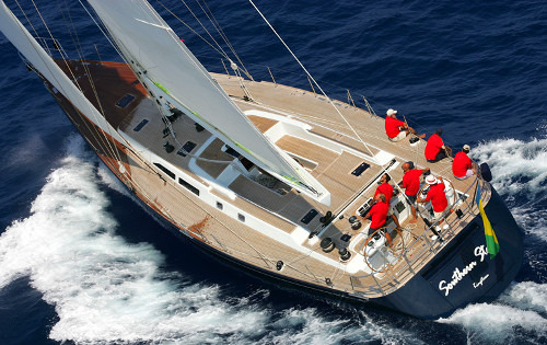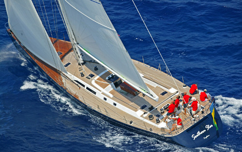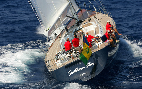 SOUTHERN STAR is hull no 5 of the successful RPN 78 mini-series, built in 2004.   She features Reichel Pugh naval architechture and interior design by the Italian company Nauta Design, and displays slippery hull lines, a fin and bulb keel, a high aspect ratio and balanced rudder.    She is an exceedingly well rounded yacht, demonstrating high performance cruising but using simple sailing systems, free from unnecessary technology. She is the ideal cruiser-racer, perfect for both relaxing blue water cruises and for competitive racing. SOUTHERN STAR came fifth place in the Barcelona Race 2005 and first place in the Boat International Superyacht Race in 2008.   She has a modern, bright and spacious dining and saloon area below deck, which consists of a table seating 8 - 10 guests and a comfortable lounging area opposite.   There is a large master cabin and two guest cabins, one with twin beds and one with bunk beds. All three have an en suite bathroom facility.   SOUTHERN STAR comes equipped with three crew members who will ensure maximum comfort, enjoyment and safety on board, whether at anchor or under sail.
