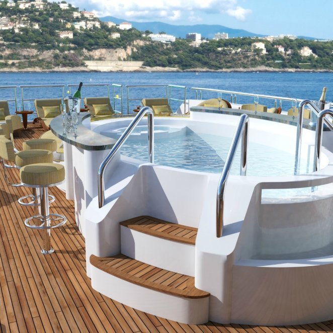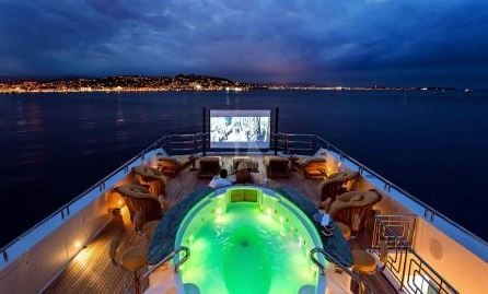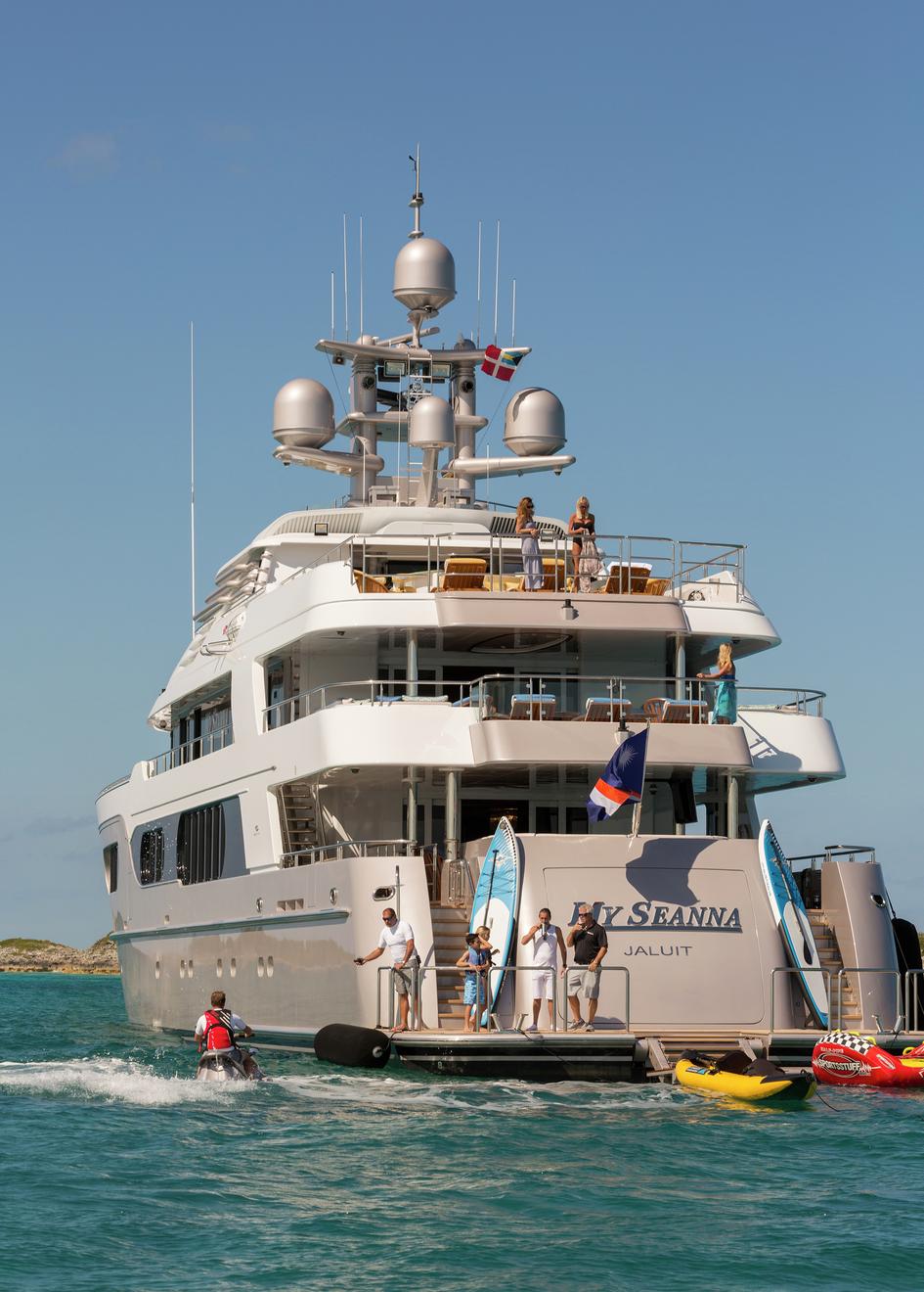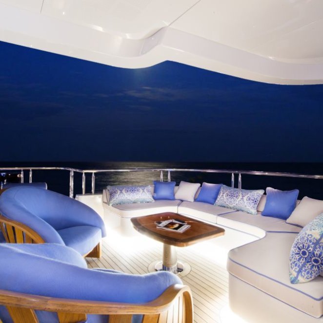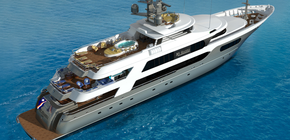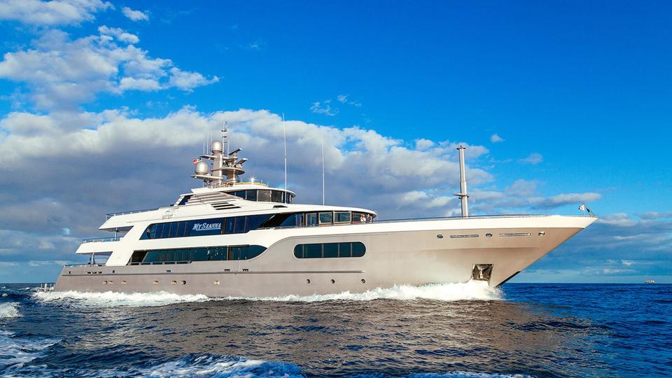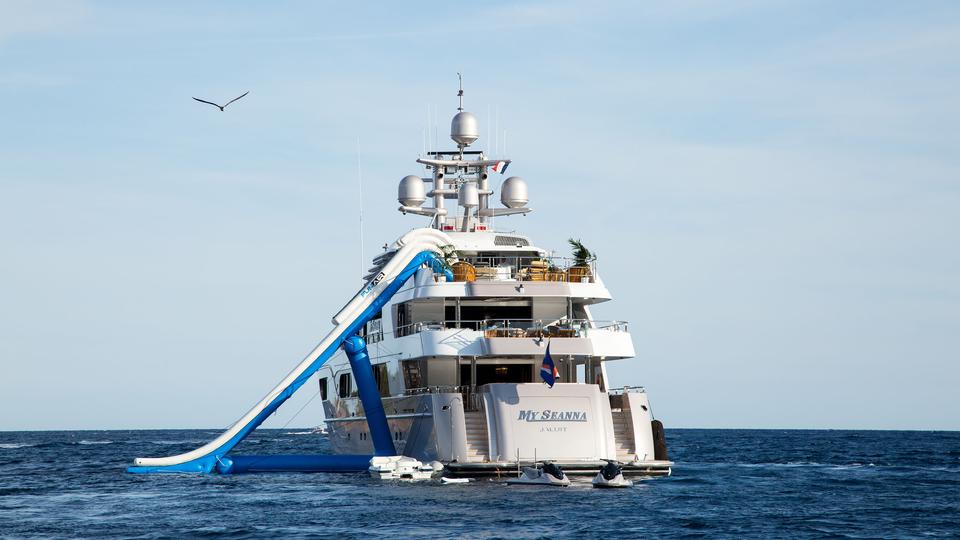 The stunning 56.4m/185ft MY SEANNA has completed an extensive 18 month rebuild, including a 7.6m/25ft extension and a dramatic overhaul of her interior. Her new, lavish interior includes a large, super-stylish beach club, a new VIP room with a 180 degree ocean view and an amazing outside movie theatre with a 132 inch screen. • Extensive 18 month interior/exterior rebuild (7.6m/25ft extension) completed October 2014 • Sublimely lavish interior with opulent furnishings; magnificent white marble floors & entire interior is brushed with 22kt gold leaf • Sky lounge with state of the art 203cm/80" curved HDTV • Sun deck VIP suite with a 180 degree ocean view • Spacious guest accommodations with two queen beds or one king bed in each cabin for greater flexibility • Upgraded state of the art AV and entertainment systems • Sauna for four and gym equipment on the sundeck • Expansive sun deck with awnings offering a large variety of seating–entertaining-lounging spaces • Spectacular oversized oval waterfall Jacuzzi and a “swim to” bar on two sides • “Movie Night Under the Stars” with a giant outdoor screen on the sun deck • Movie screen size: 178cm x 284.5cm (335cm diagonal)/70"x112" (132" diagonal) • Panoramic crow’s nest with large sun pad and hi-top table and seating • 12.2m/40ft 2014 Van Dutch tender • Pristine, well-appointed beach club with Opacmare swim platform and inflatable platform with jetski docking stations • Experienced and welcoming Captain Todd has an enthusiastic “can do” attitude • Expect service from the highly experienced and world-class and child friendly crew • Full availability- the owner is commercially minded • Arguably one of the best wine collections afloat with over 200 exceptional wines (wine list with prices available on request) • Cigar collection of 6 varieties available for clients. • Full beach set up - ideal for the Caribbean