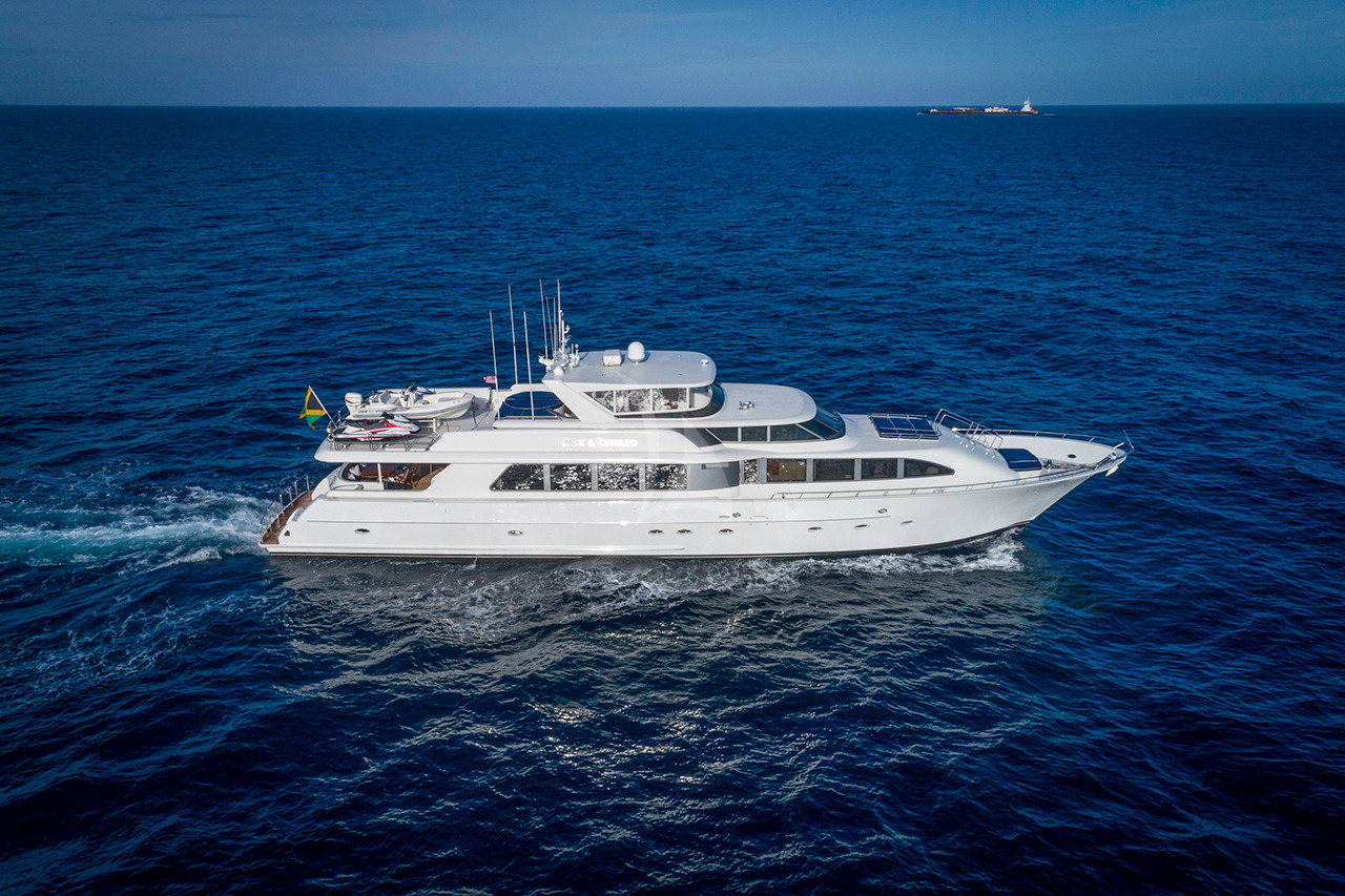 RISK & REWARD represents the best of the Westport 112 series on today's charter market! Having just completed a refit, her beautiful interior is crisp and fresh and offers many dining and lounge areas for charter guests to enjoy. Her voluminous layout offers something for every charter guest, making her an ideal choice for large groups or families. Her shallow draft is perfect for navigating the waters and islands of the Bahamas. RISK & REWARD accommodates 8 guests in 4 staterooms, including a master suite and a VIP stateroom. Her enthusiastic and active crew looks forward to showing guests the best the Bahamas has to offer.