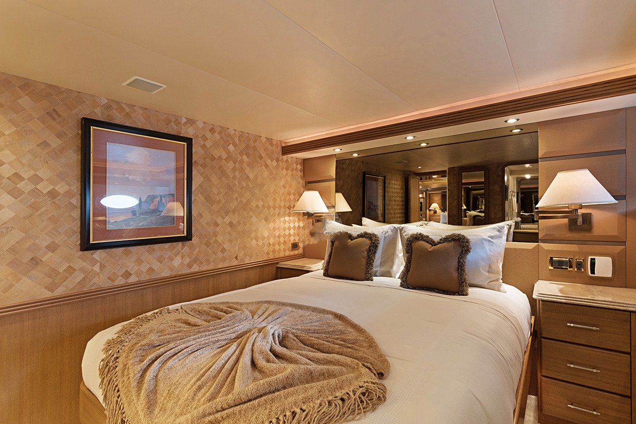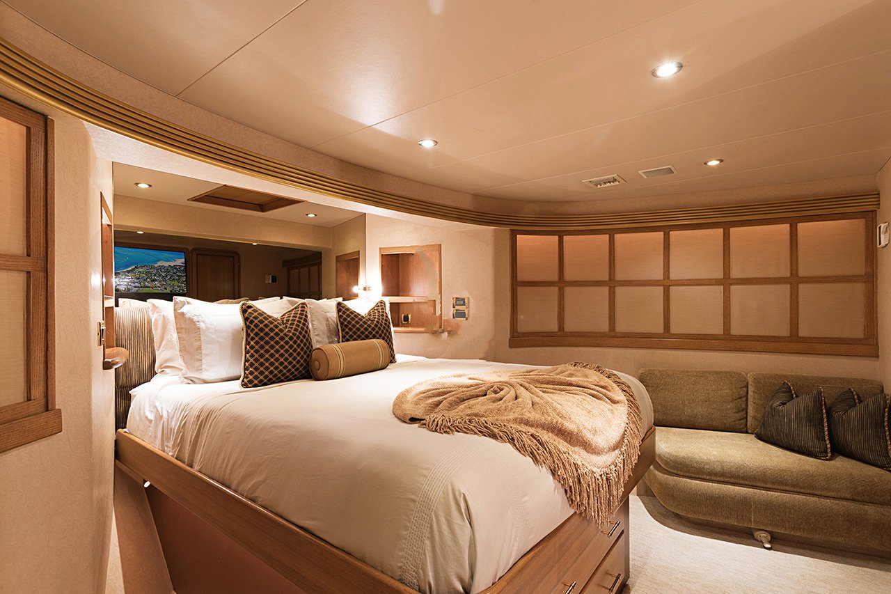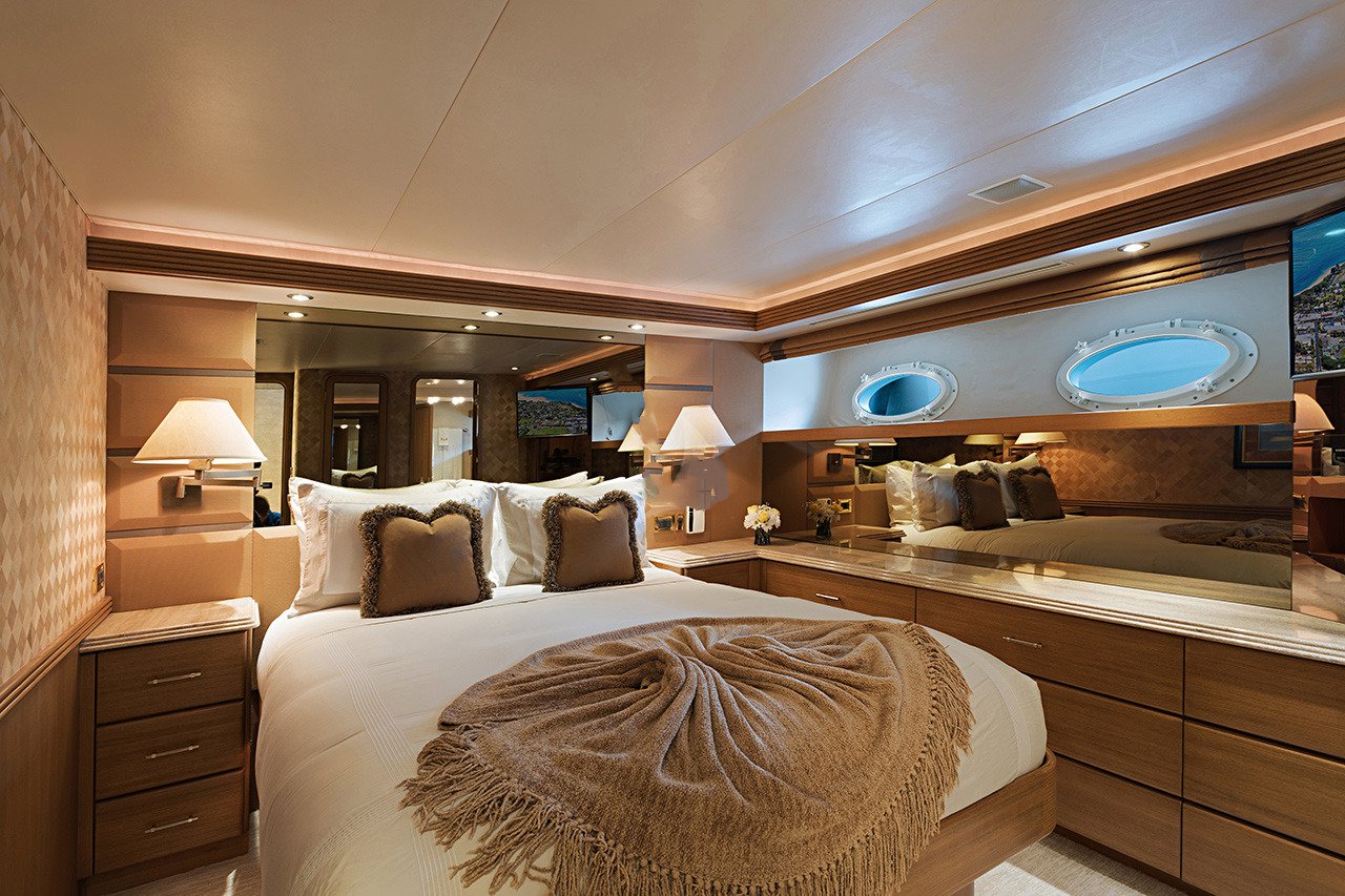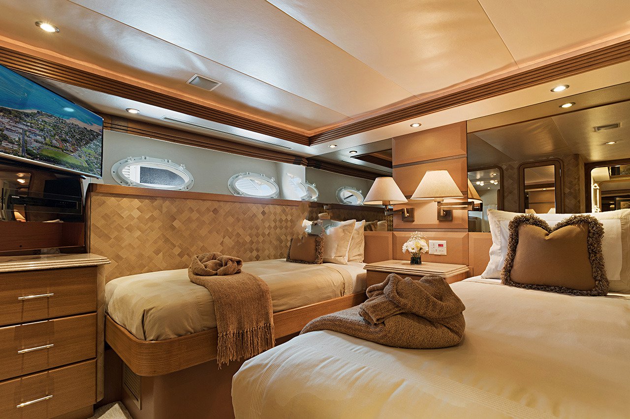 1 King master suite, 1 forward VIP, 1 Double, 1 convertible twin/queen cabin