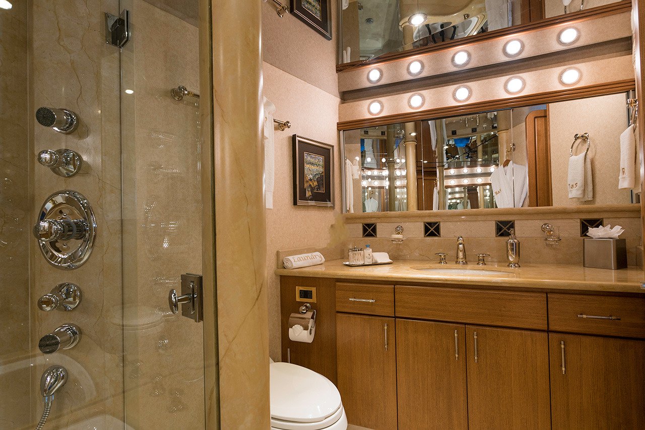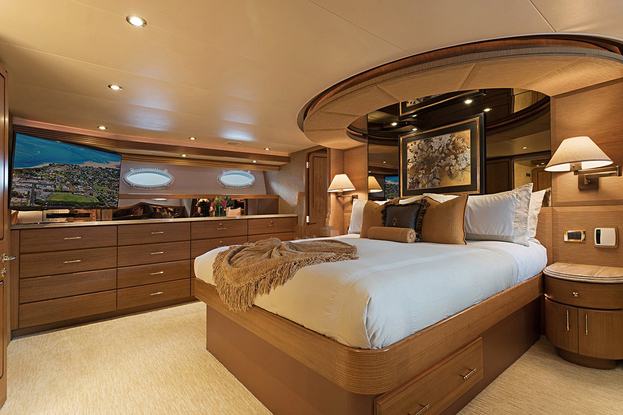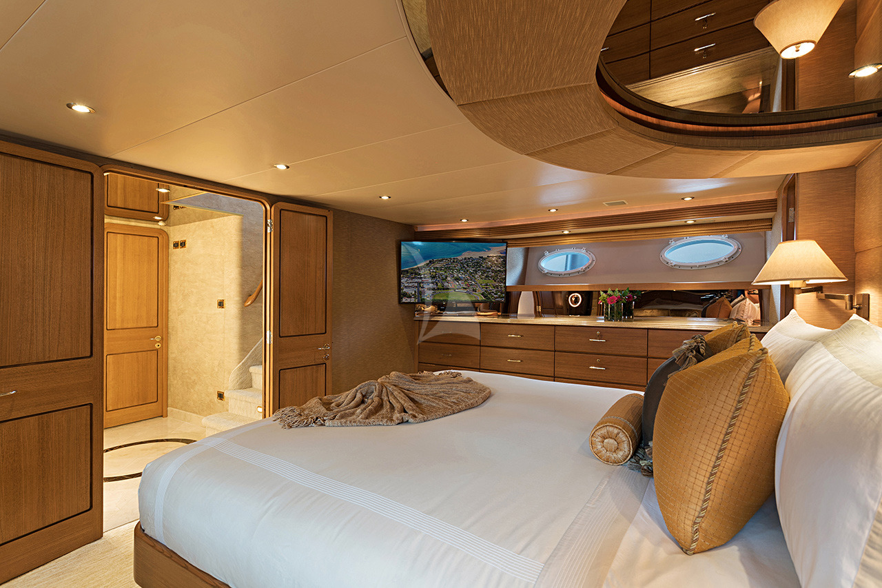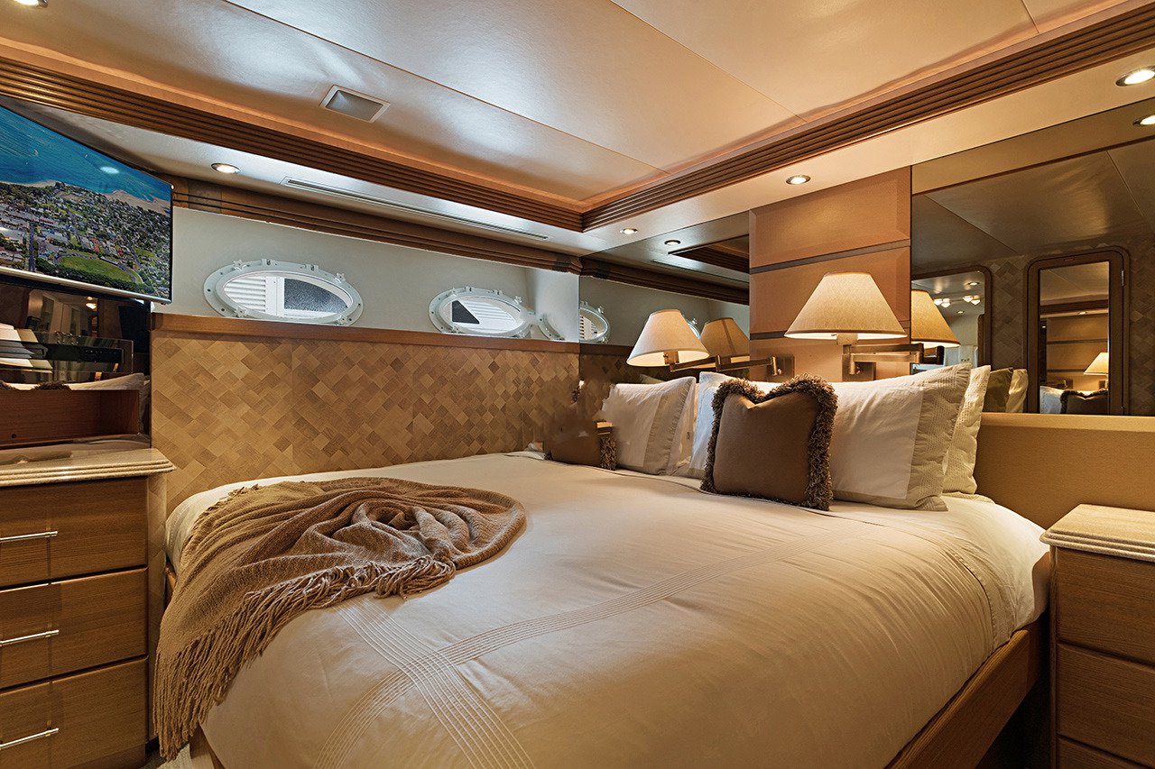 1 King master suite, 1 forward VIP, 1 Double, 1 convertible twin/queen cabin