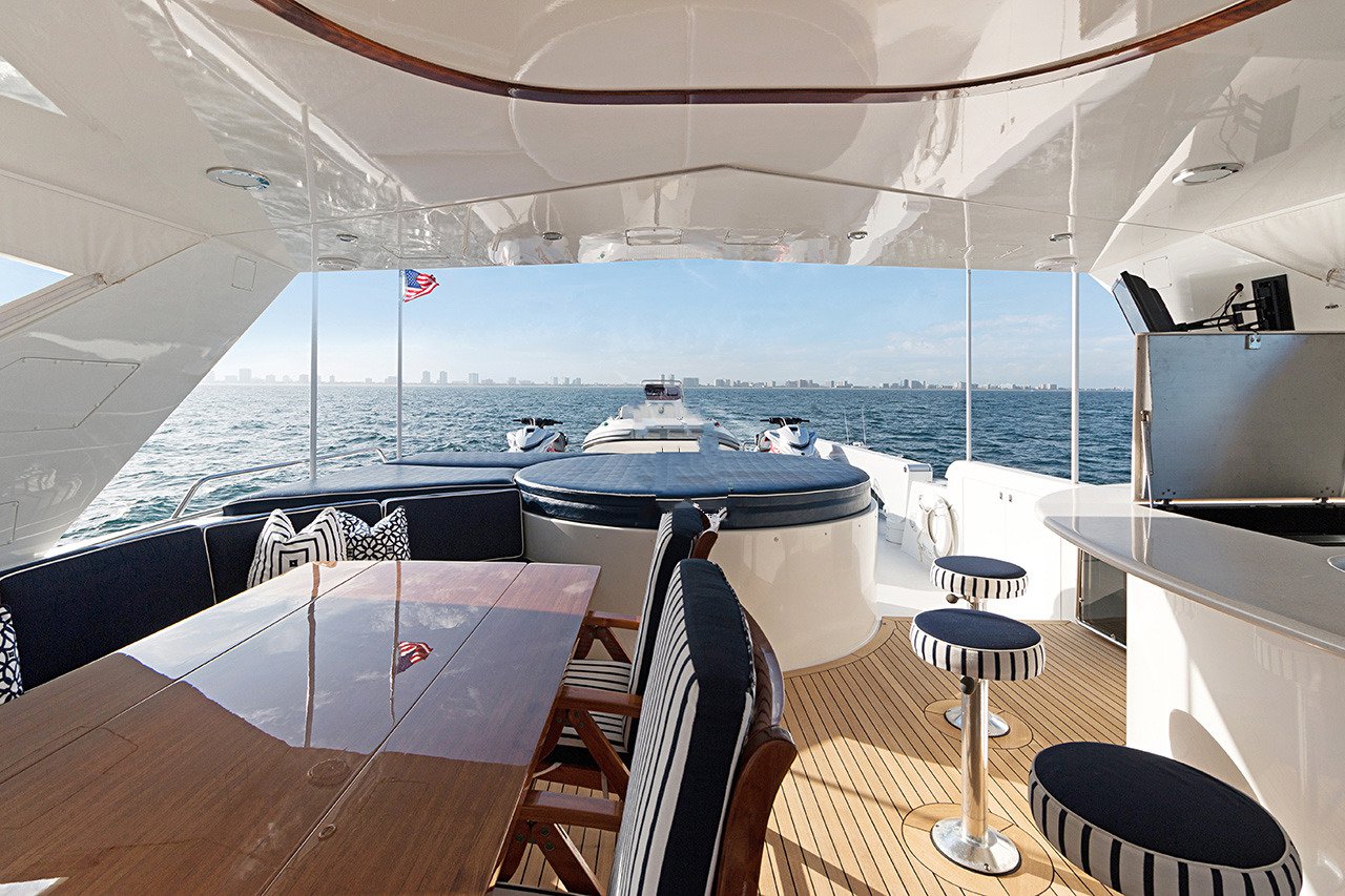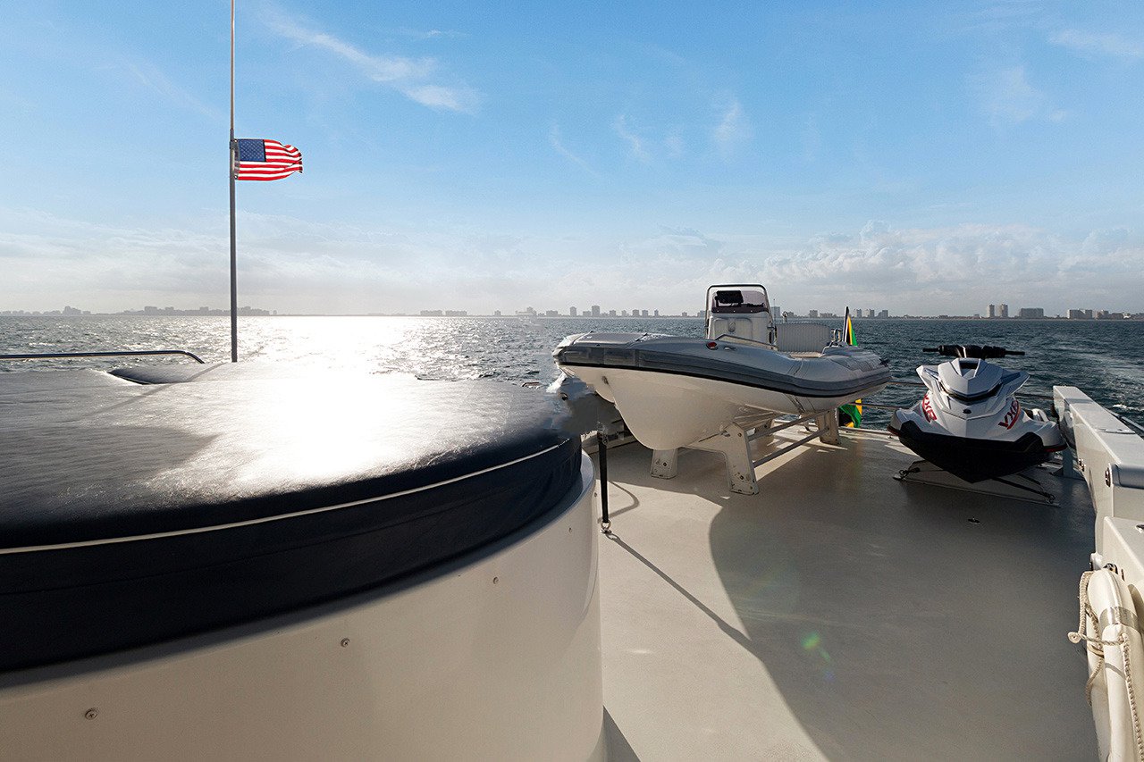 Refit/Maintenance Details: Tenders & Toys: Tenders 2010 36' Invincible with triple 900 HP engines 1 4.3m Zar inflatable with Evinrude 90hp outboard Water Sports 2 Yamaha VXR waverunners 1 Wakeboard 1 Kneeboard 2 Adult Inflatable SUP’s 2 Junior Inflatable SUP’s 1 Tow Tube 1 Fiesta Party Island Inflatable twin Jet ski dock swim platform extension Ample Snorkeling sets for all guests and children Inflatable water slide Beach Setup 2 10x10 Canopy’s 8 Collapsable Chairs 2 Collapsible Love seats 2 24x48 folding Tables volleyball, football, soccer ball Fishing 2 LP S-1200 Electric Reel/Rod combo 2 TLD 50 2 speed Reel/Rod Combo 4 TLD 25 Reel/Rod Combo Ample fishing tackle Yeti 250 and 65 Coolers