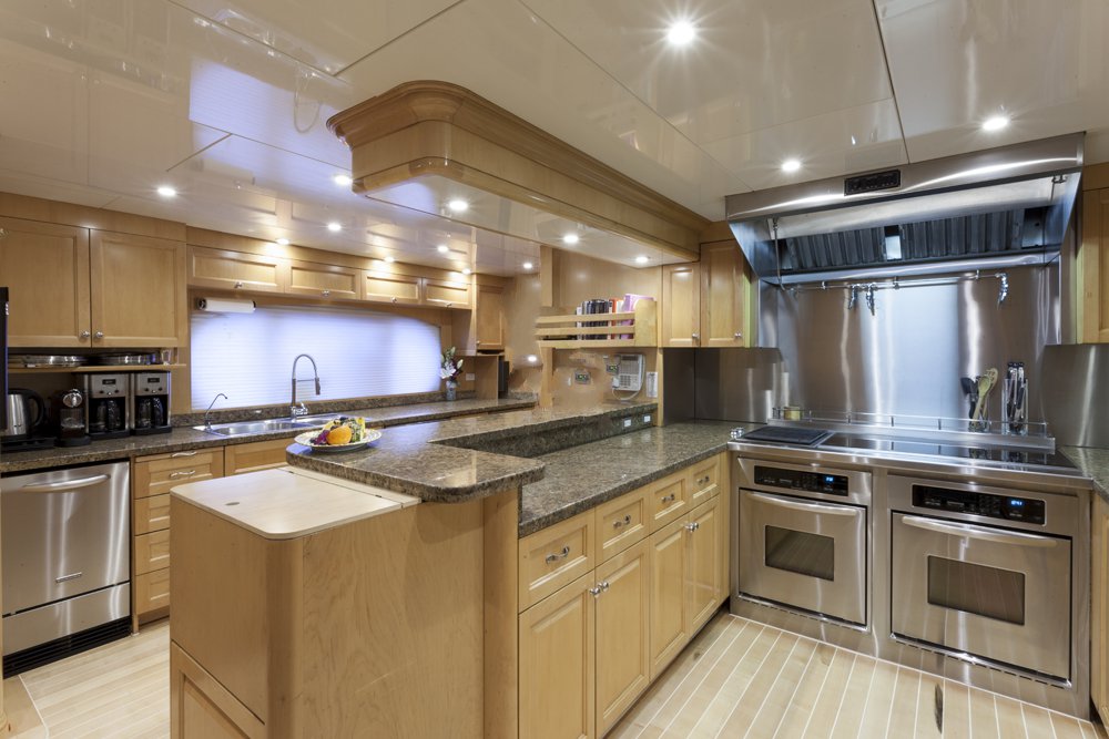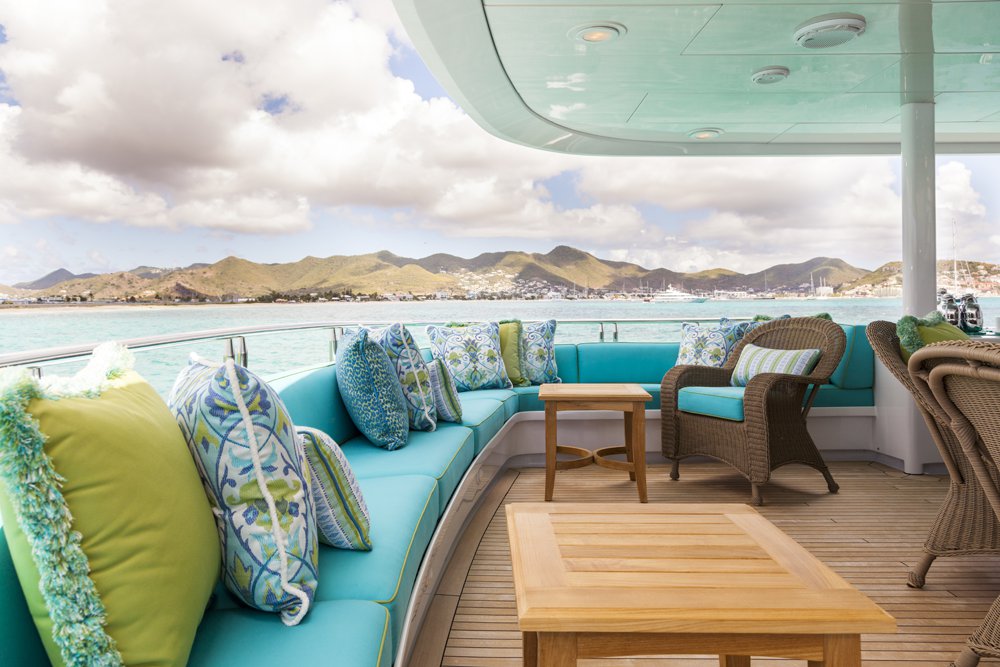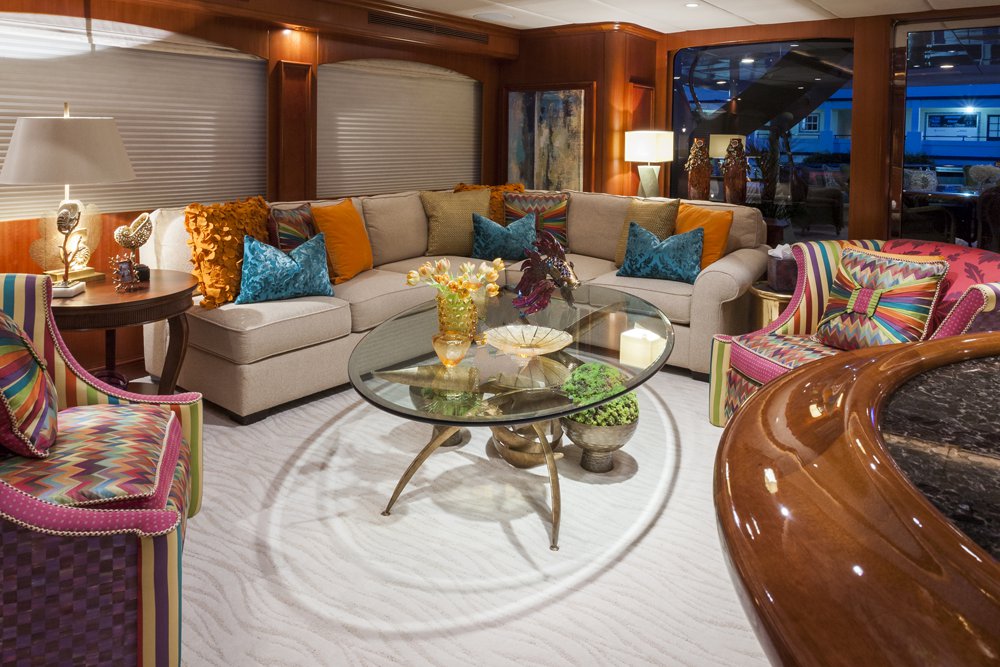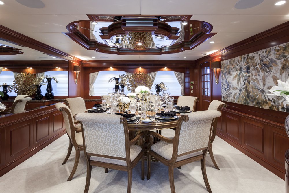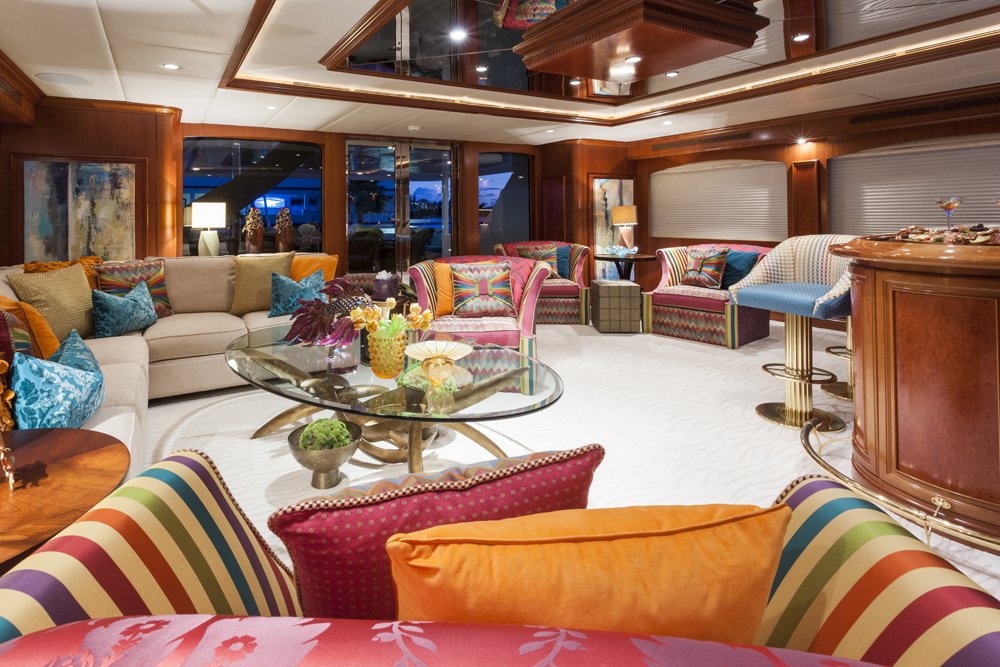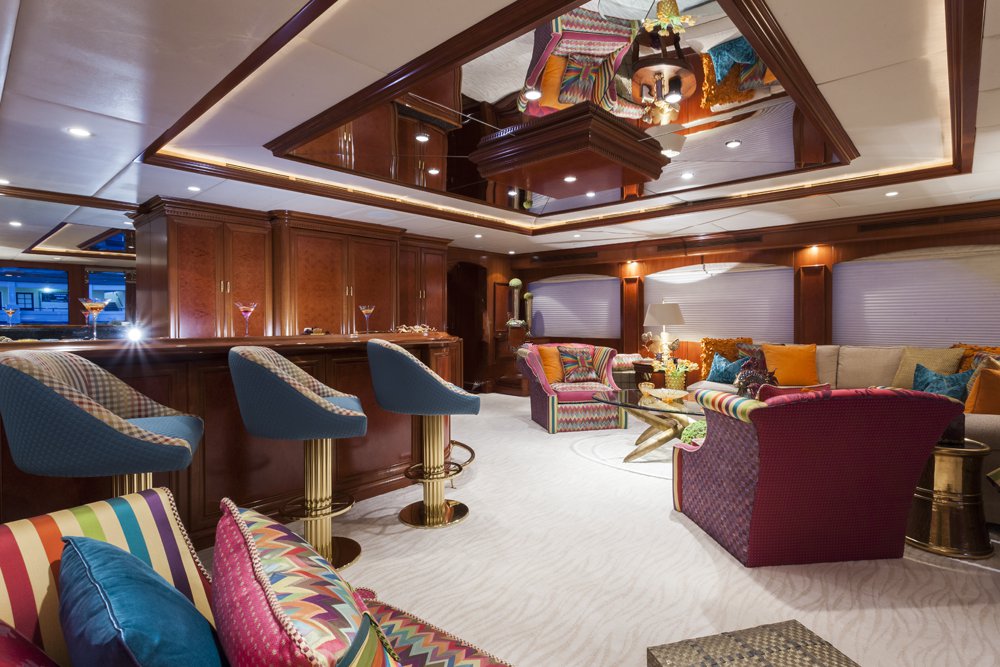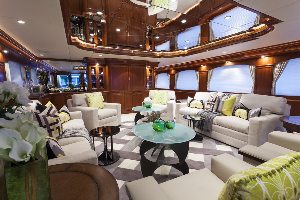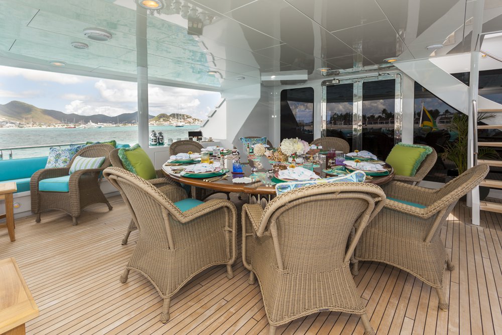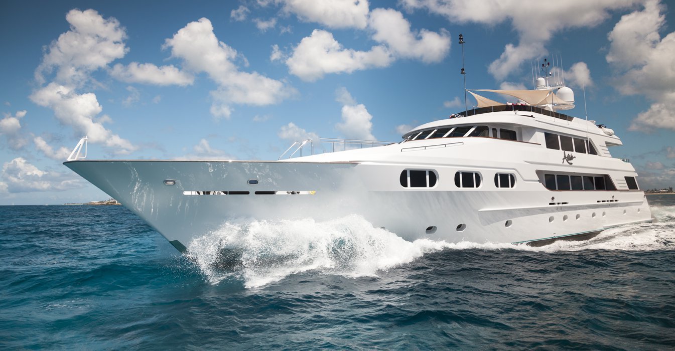 Previously named Encore, the 150 foot Mega Yacht Attitude underwent an extensive interior and exterior seven month refit in 2014. Accommodating ten guests, the Attitude has five very comfortable staterooms. A full beam master stateroom is located on the main deck, forward. It has a king bed, sofa, desk, his and her closets, vanity, wine cooler, and bathroom with jacuzzi and separate shower. Below deck, there are two additional king staterooms, each with their own desks, and bathrooms with Jacuzzi tubs. Additionally, there is a queen stateroom and a twin stateroom, each with a bathroom and shower. The Attitude offers plenty of dining and lounging opportunities. The main salon has plenty of seating in plush couches and overstuffed chairs. There is a separate dining salon for formal dining, and dining on the main aft deck for alfresco dining for up to ten. Recreational opportunities are abundant on the Attitude. The sun deck offers a Jacuzzi with a bar, and a wet bar. There are chaise lounges and a sun pad area on the sun deck as well, for sunbathing. The sky lounge offers a large entertainment center, wet bar, card table, L shaped sofa, and desk. There are many water toys available, including wave runners, paddleboards, wakeboards, kneeboards, snorkel gear, fishing gear, and a lot more. There is even a 32 foot tender rigged for fishing that can be towed behind the yacht, as long as the weather permits. The Attitude is equipped with stabilizers for both underway and zero speed stabilizers for the comfort of her guests. Please contact us for more information on the Attitude. Key reasons to charter ATTITUDE • Fun sun deck with comfortable lounging choices, optional awnings, fantastic bar area, Jacuzzi with colored “night lighting” & 2 disco balls • Equipped with the latest and fastest technology available at sea with 8 WiFi access ports • Dining options – formal dining room + 2 alfresco options • Spacious master suite with 2 person granite shower and separate jacuzzi tub en suite • Delightful and uplifting Dee Robinson interior accented with artwork and accessories from designers Jay Strongwater, L’object, Michael Aram, Mackenzie Childs and Global Views • Refrigerator in each cabin • 9.75m (32ft) Intrepid tow tender rigged for fishing • Large array of toys including 4 jetskis! • Exceptional Beach BBQ and party setup • Crew prides themselves on anticipating their guests’ every need!