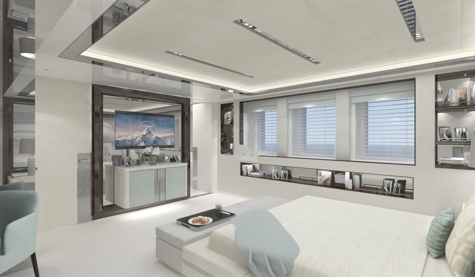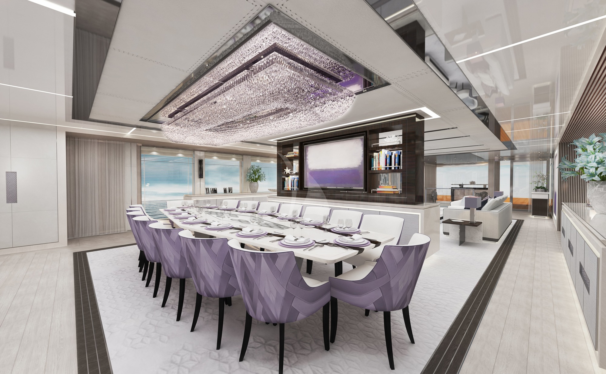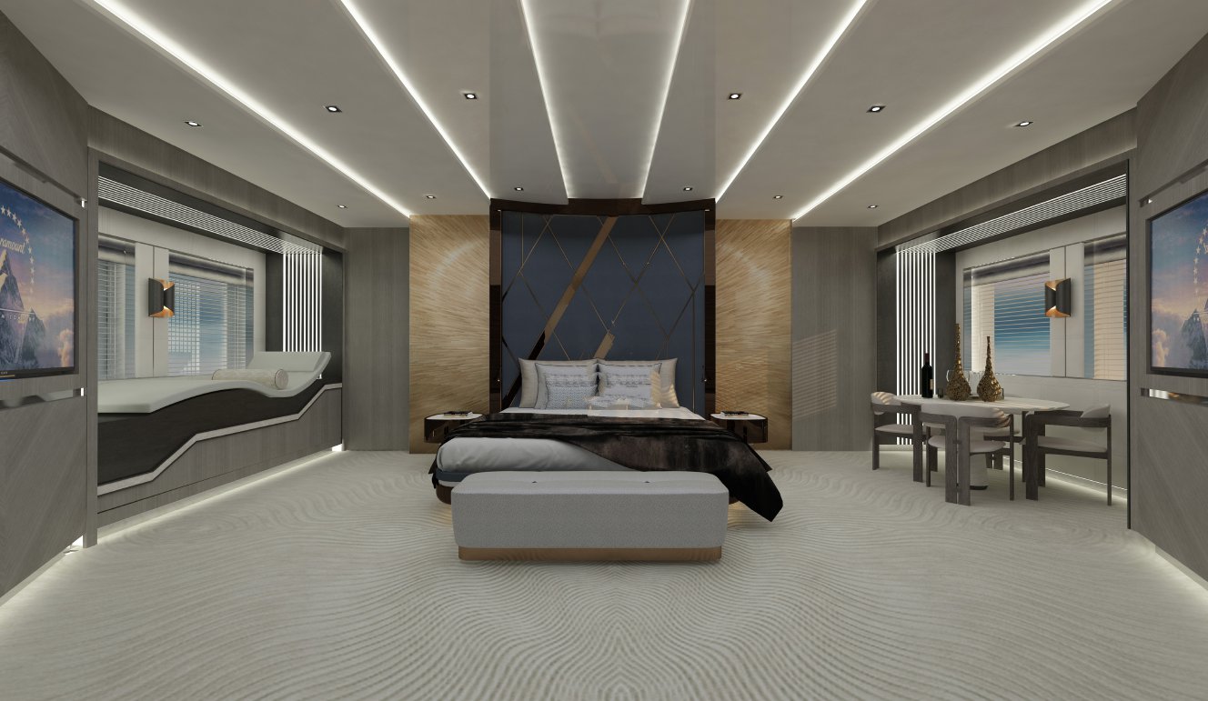 Tatiana's eight cabins can welcome 12 guests, with accommodation arranged as a master suite, two VIP staterooms, and four double cabins (two of which are convertible into twin beds) and one twin cabin. An optional double cabin is located forward of the owner’s deck – ideal for children. The master is found on a dedicated owner’s deck, which features a large en suite, private living room, fore and aft outside spaces and a private Jacuzzi. Guests have the choice of two living spaces on the main and upper decks, with a vast main salon incorporating a lounge area and formal dining space, with all levels linked by an elevator. A stand out benefit of her forward-thinking layout is the direct access from the main salon to the beautiful beach club, ensuring seamless guest movement between all key guest spaces – this is form and function at its best.