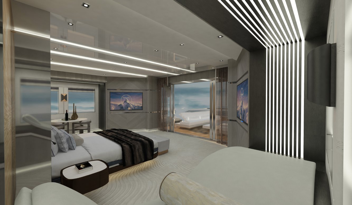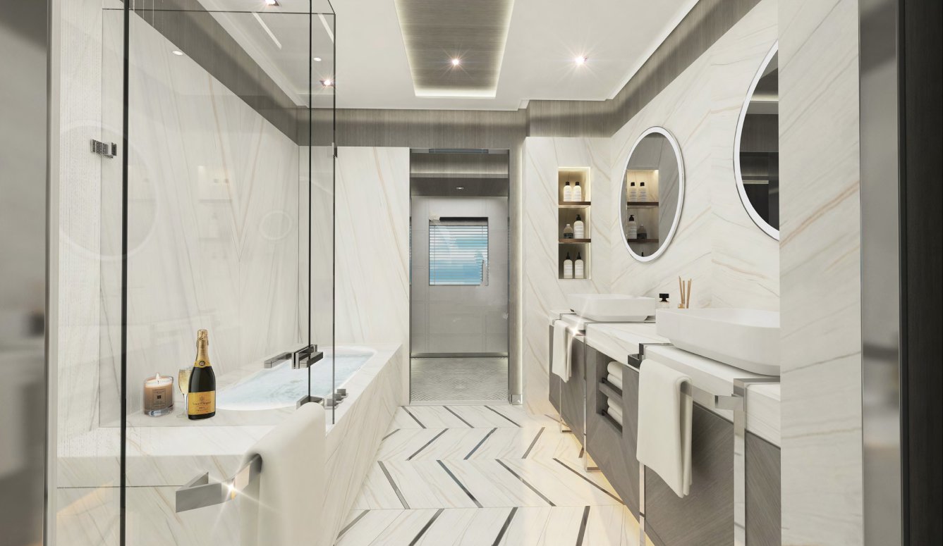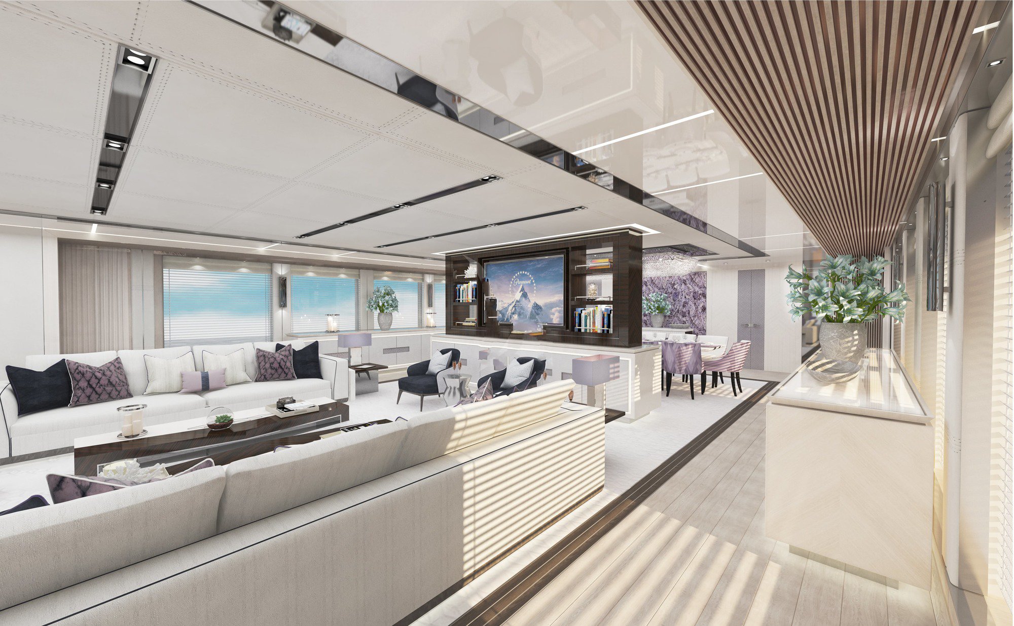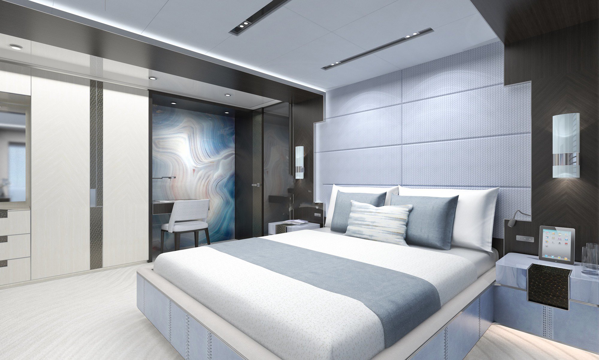 Tatiana's eight cabins can welcome 12 guests, with accommodation arranged as a master suite, two VIP staterooms, and four double cabins (two of which are convertible into twin beds) and one twin cabin. An optional double cabin is located forward of the owner’s deck – ideal for children. The master is found on a dedicated owner’s deck, which features a large en suite, private living room, fore and aft outside spaces and a private Jacuzzi. Guests have the choice of two living spaces on the main and upper decks, with a vast main salon incorporating a lounge area and formal dining space, with all levels linked by an elevator. A stand out benefit of her forward-thinking layout is the direct access from the main salon to the beautiful beach club, ensuring seamless guest movement between all key guest spaces – this is form and function at its best.
